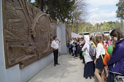 Выступление автора С.Титлинова перед ветеранами с рассказом о содержании барельефов