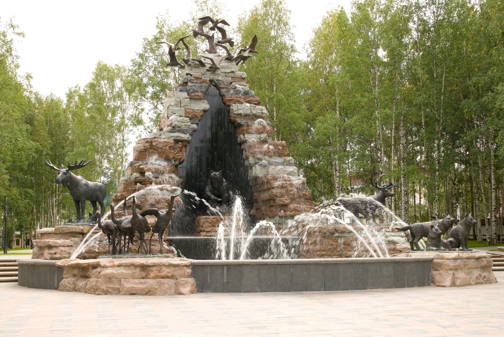 Фонтан "Обь и Иртыш" в Парке им. Лосева в г. Ханты-Мансийске